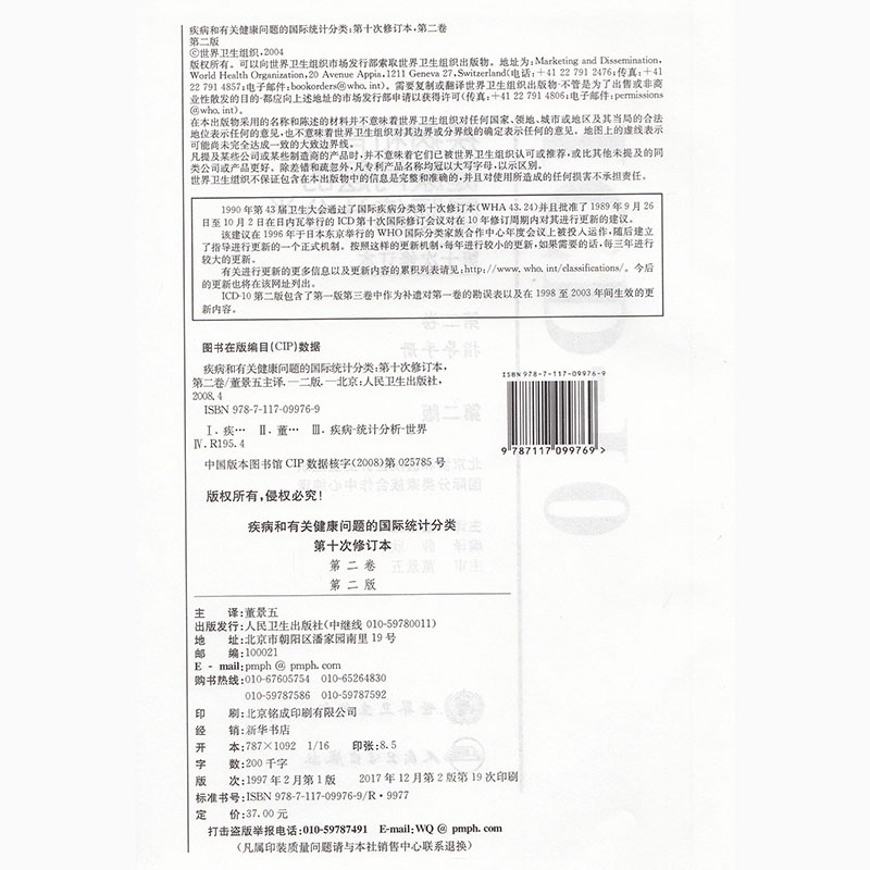 国际统计分类 ICD 10第二卷2卷指导手册第二版 现货编码 人民卫生出版 疾病和有关健康问题 董景五主译 社 培训教材