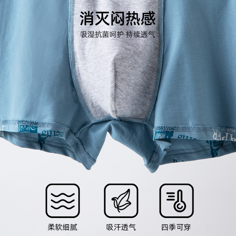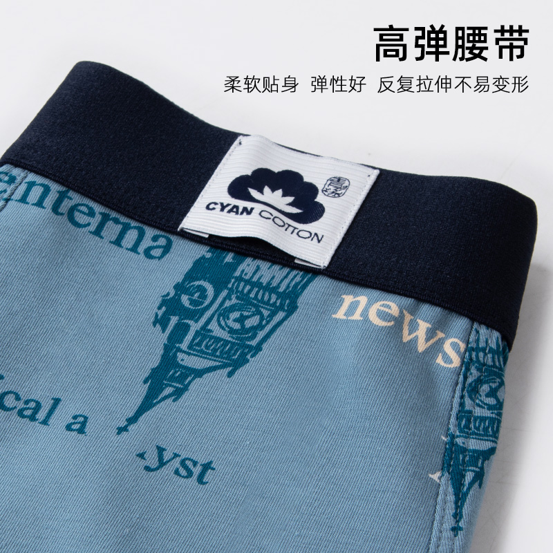 内裤 青系纯棉卡通抗菌中腰平角青年时尚 透气男士 夏季 潮流韩版