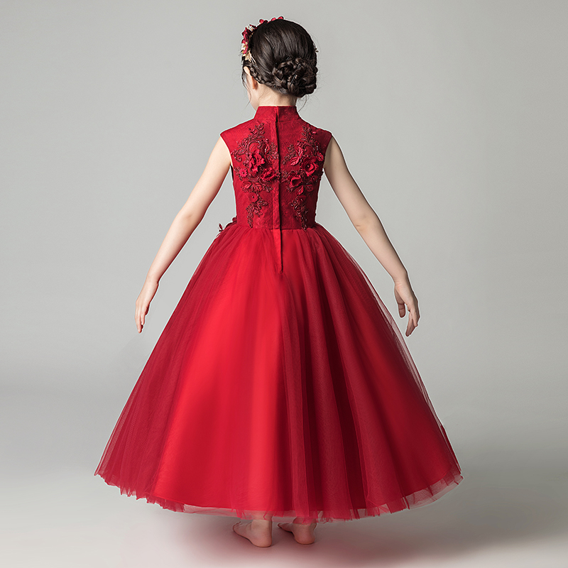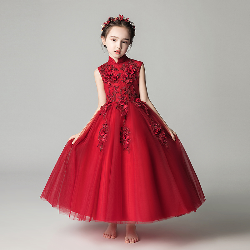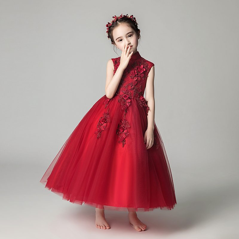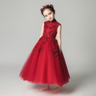 女童生日公主裙礼服蓬蓬纱儿童红色小女孩主持人花童钢琴演出服
