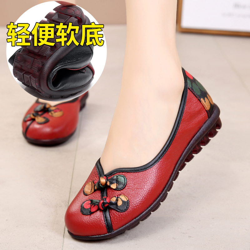 夏季 复古民族风女鞋 中年妈妈鞋 大码 子 软底舒适真皮平底单鞋 2025款