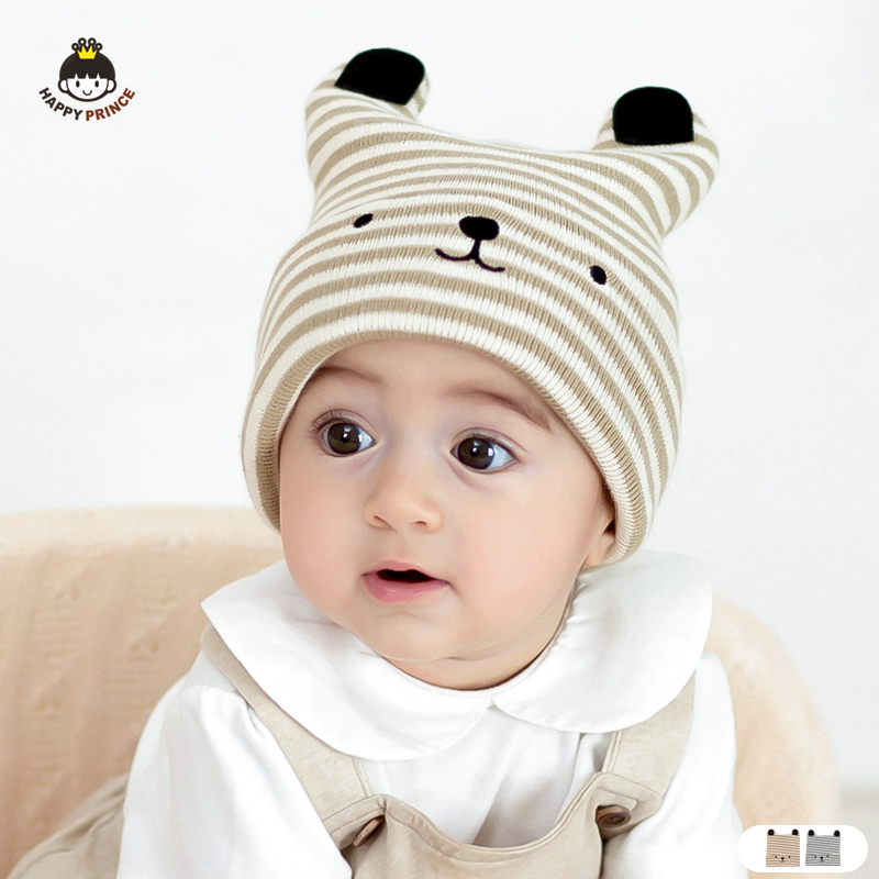 韩国宝宝帽子春秋卡通熊套头帽男女新生儿童棉质针织婴儿帽子秋冬