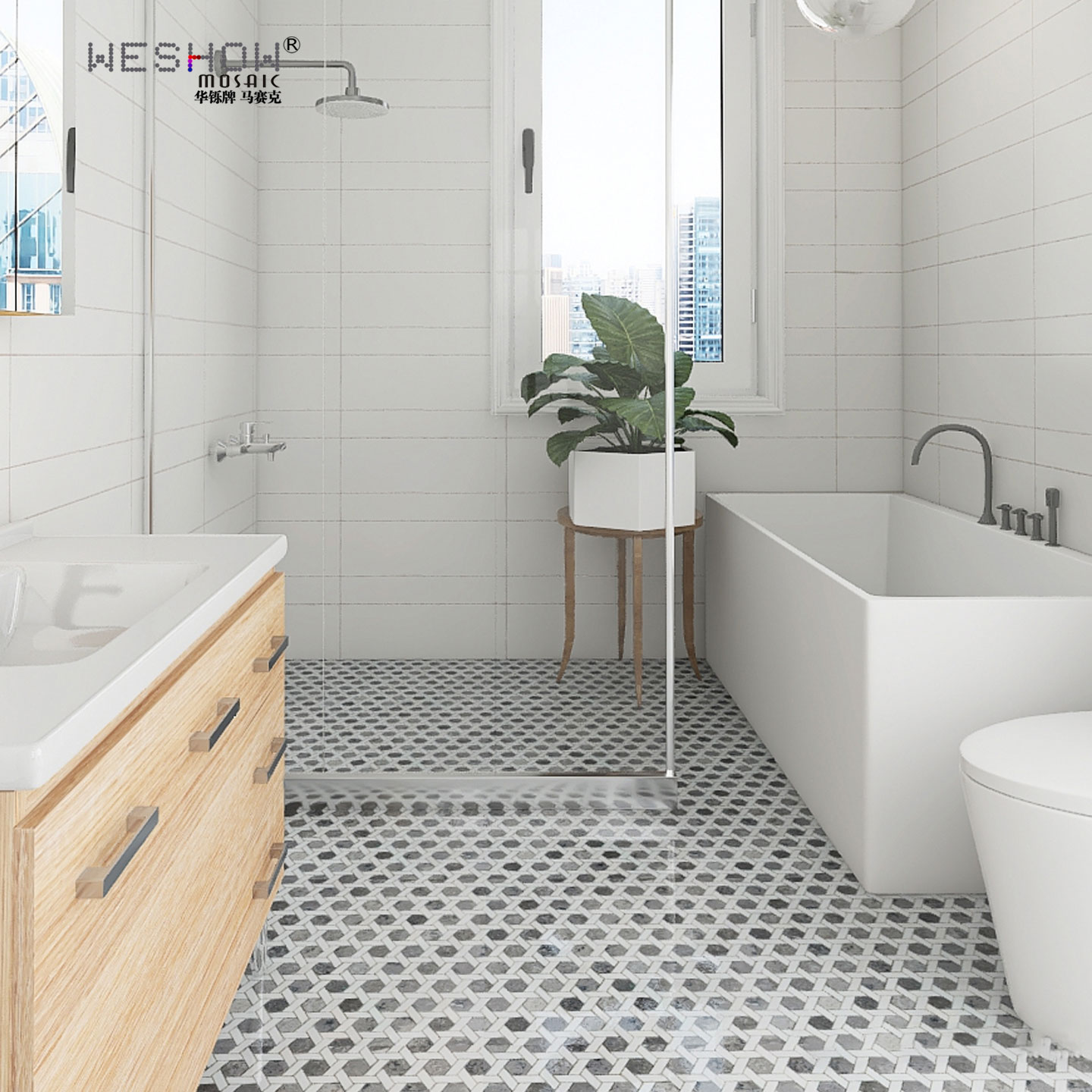 卫生间大理石马赛克六角形瓷砖拼图石材洗手盆台背景墙厨房文化石