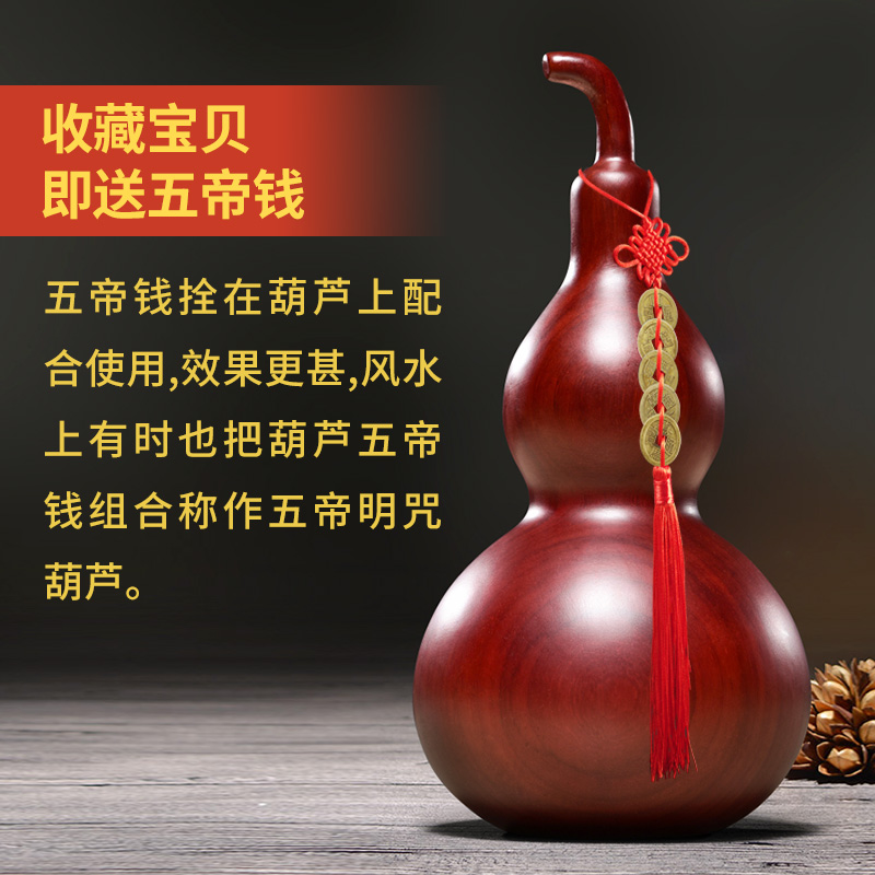 黑檀实木雕刻福禄葫芦摆件红木家居客厅电视柜办公装 饰工艺品送礼