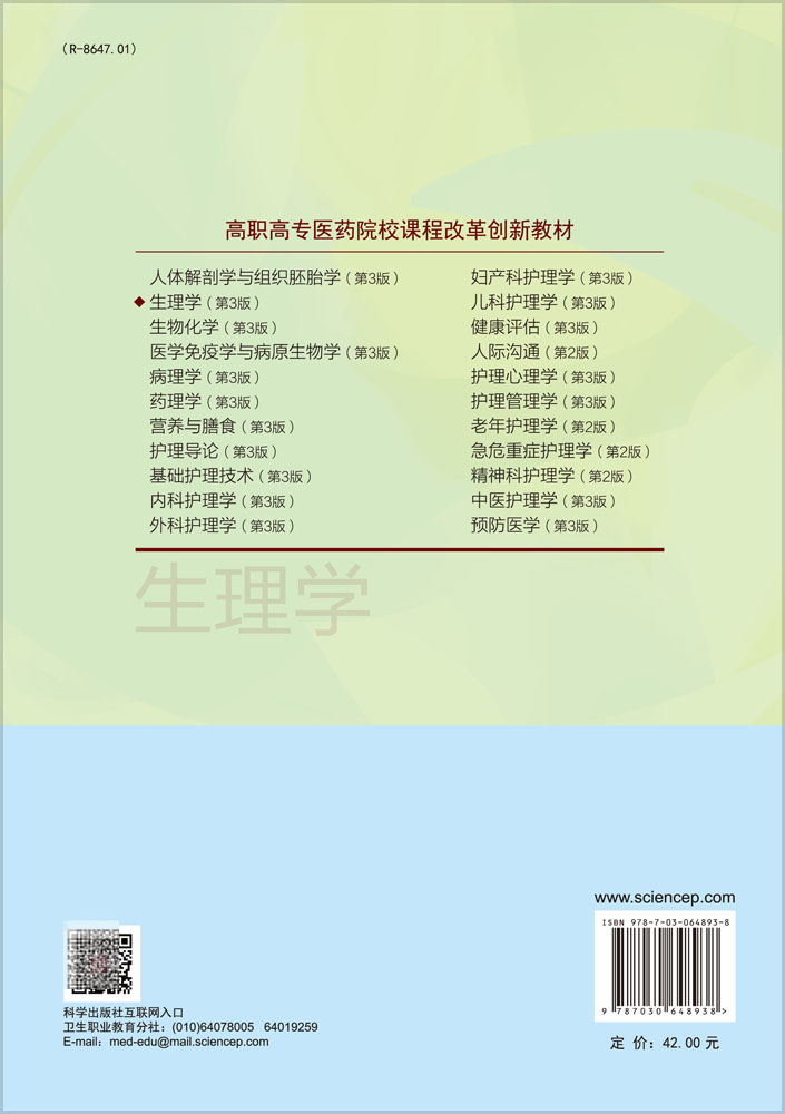 社9787030648938 三高职高专医药院校课程改革创新教材供高职高专护理助产等医学相关专业使用科学出版 现货 生理学第3版