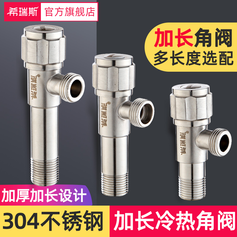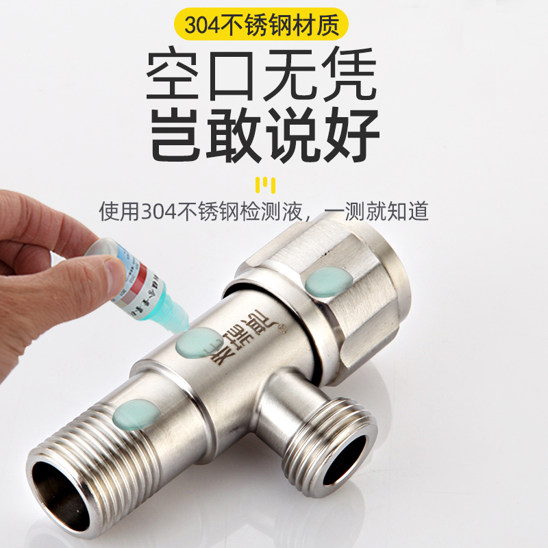 加长角阀热水器水阀马桶开关304不锈钢一进双出三角阀入墙加长型