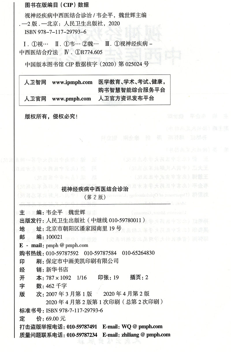 9787117297936 社 视神经疾病中西医结合诊治第2版 二韦企平魏世辉人民卫生出版