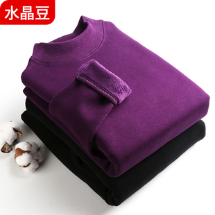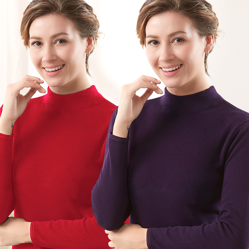 女半高领秋衣加绒上衣单件加厚中老年人保暖内衣套装 打底 妈妈长袖