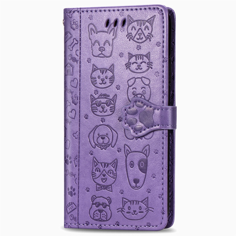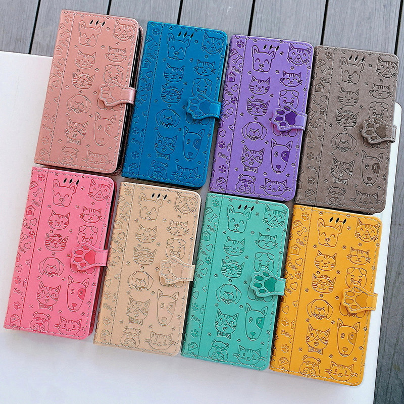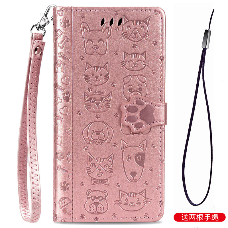 适用于小米10翻盖Pro浮雕10lite青春版 防摔送挂绳 note10保护套Youth5G卡通猫狗压花手机壳仿皮皮套可爱女款
