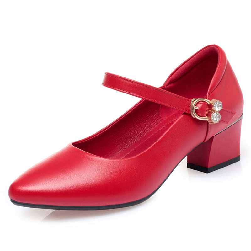 单鞋 子女士高跟鞋 妈妈真皮软底跳舞鞋 软皮女鞋 舞蹈鞋 中年红色皮鞋