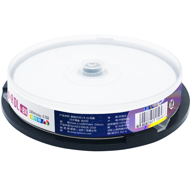 大容量D9 10片装 空白光盘8G刻录盘dvd空白盘刻录光碟 DL单面双层可打印 8X台产 8.5G 8速 联想DVD