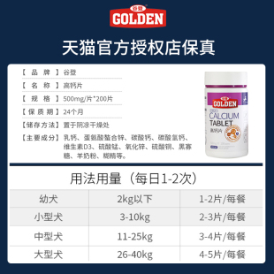 谷登狗狗钙片200片健骨补钙幼犬微量元 素狗营养品泰迪成犬钙粉狗