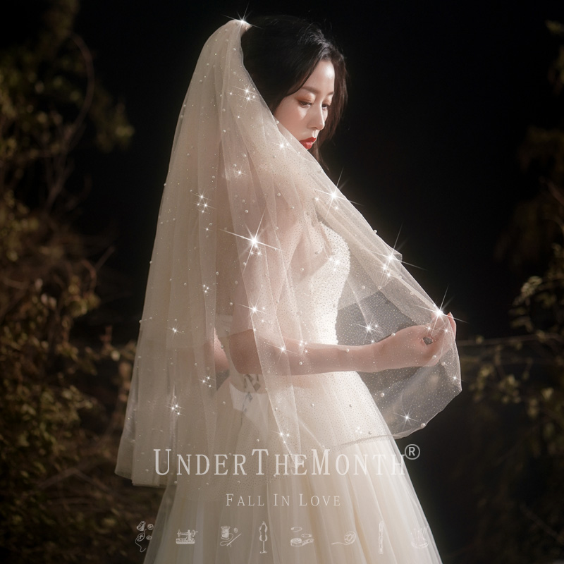月下相恋闪闪星空头纱抖音网红同款 拍照道具新娘头纱头饰简约短款