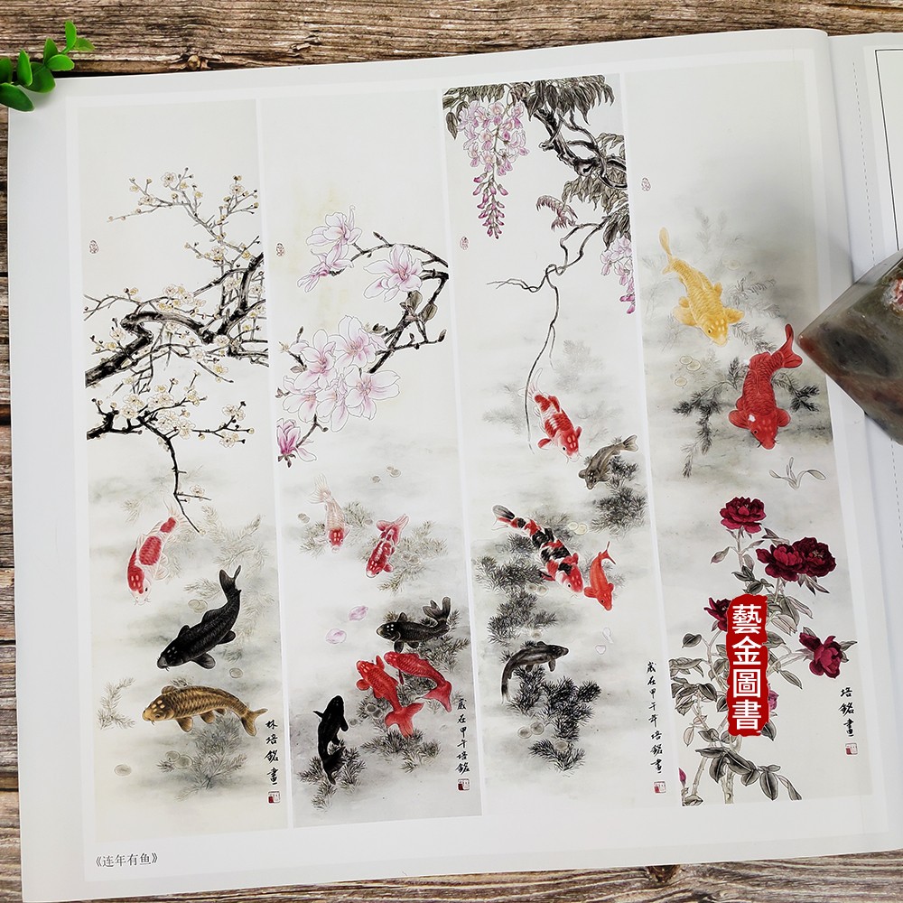 连年有余条屏 原大白描线描内附彩稿对照 实用白描画稿 草虫画国画技法 杨柳青画社 林培铭绘 原大版