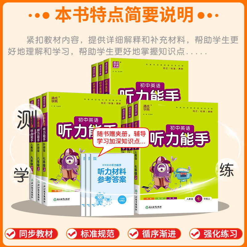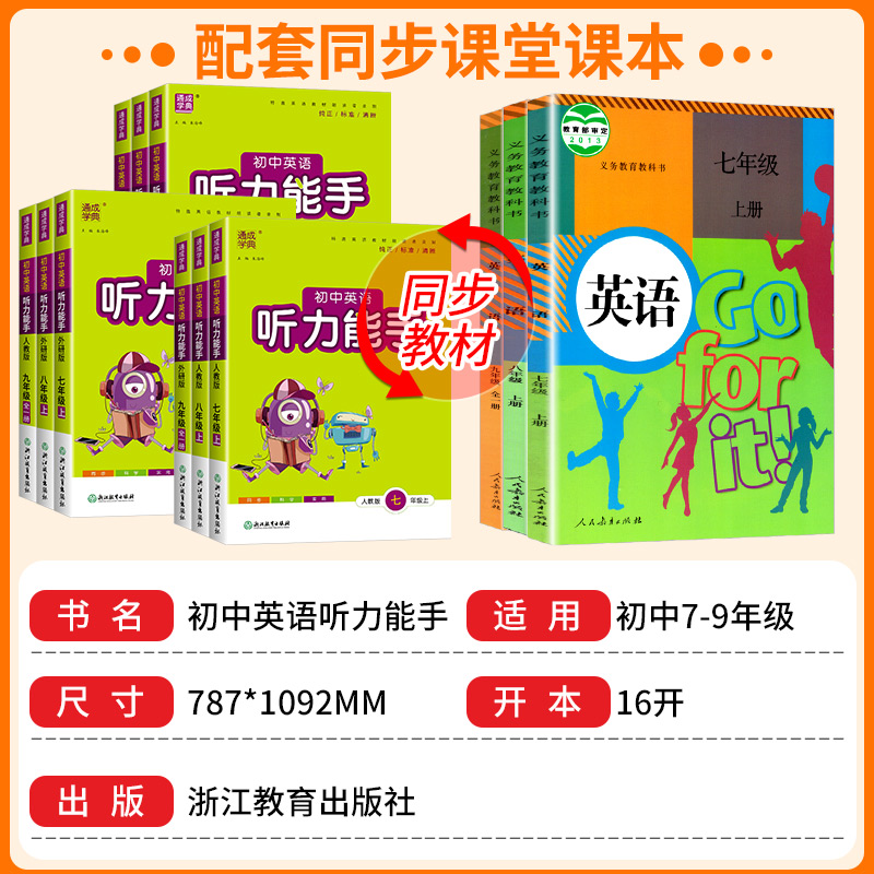 初中生上册下册配套同步练习册课堂专项训练初中课时必刷题总复习辅导资料 外研版 2026版 通城学典初中英语听力能手七八九年级人教版