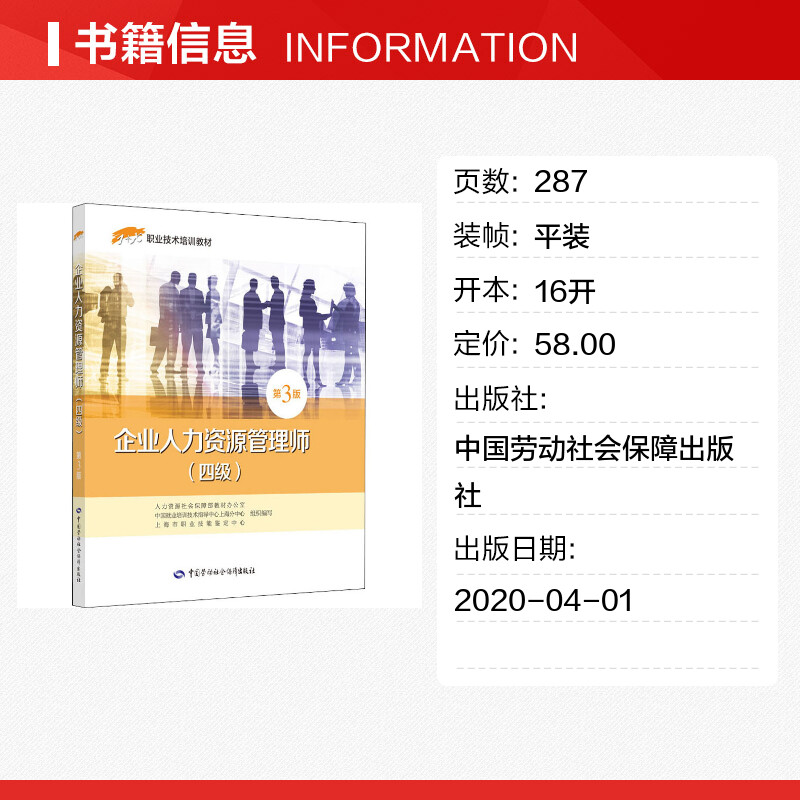 人力资源社会保障部教材办公室 等 新华书店正版 四级 图书籍 励志 第3版 管理其它经管 企业人力资源管理师 编