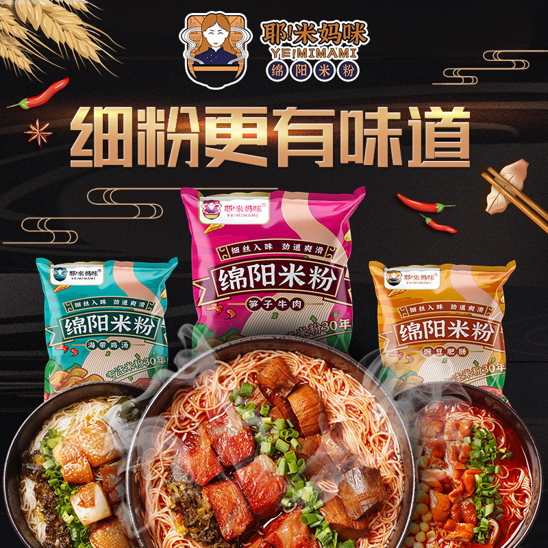 耶米妈咪四川绵阳米粉方便速食牛肉肥肠鸡汤细米线小袋装 x3组合装