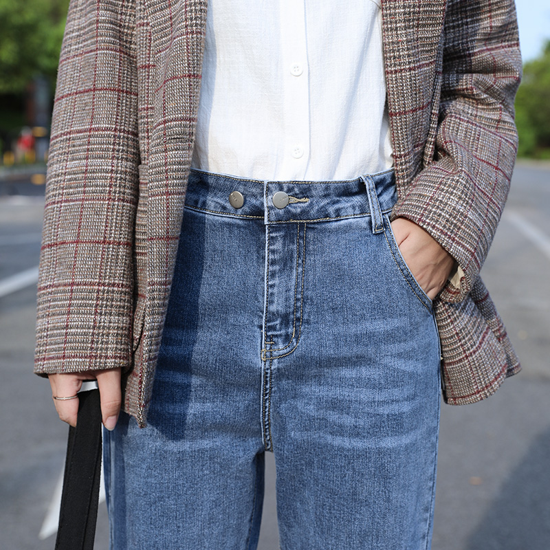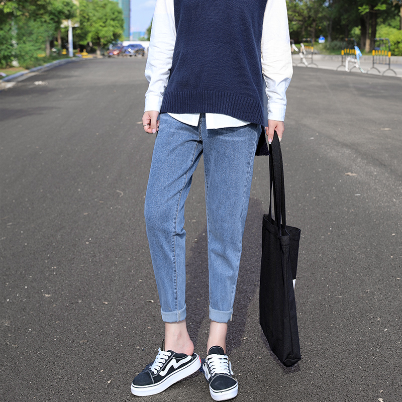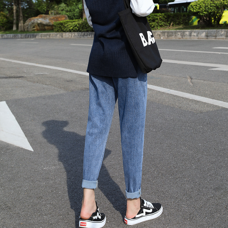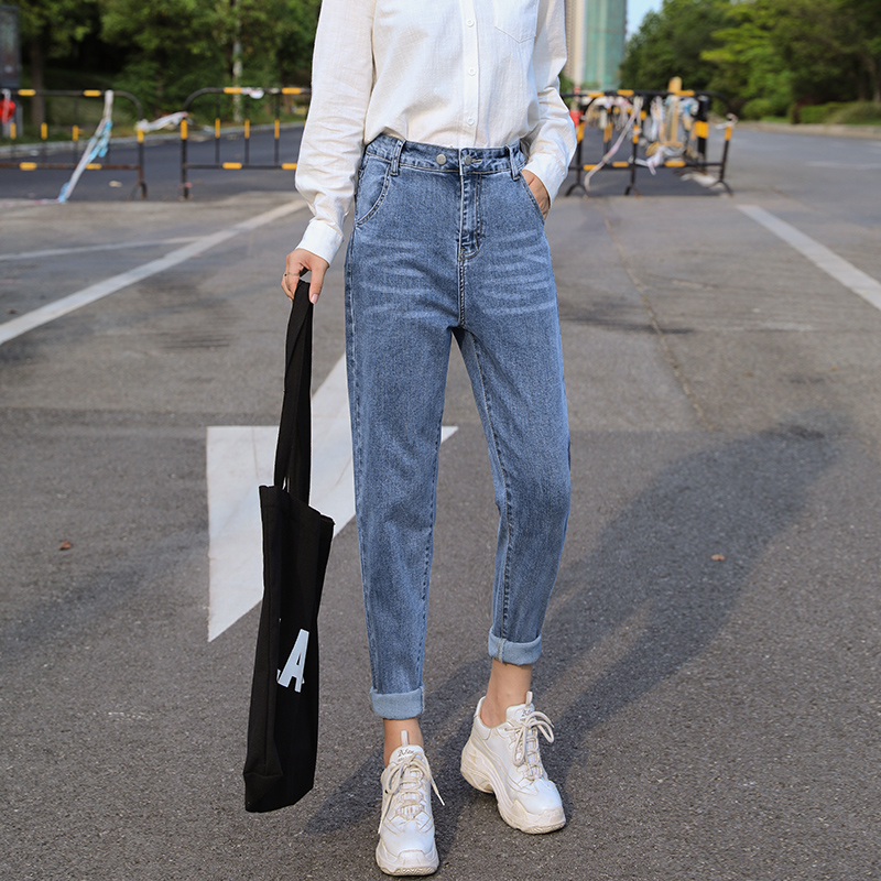 胖mm微胖小个子老爹萝卜裤 高腰显瘦修身 女2024春秋新款 哈伦牛仔裤