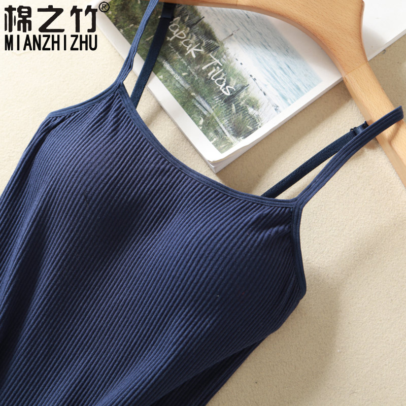 纯色棉质女带胸垫吊带背心免穿文胸罩杯bra一体式 内衣可外穿瑜伽