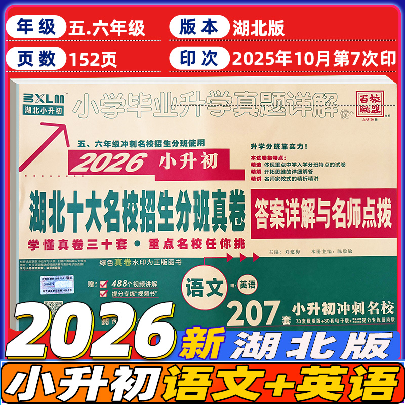 2026版 调真题冲刺名校小升初重点百校联盟招生分班卷 湖北十大名校入学摸底真题卷语文数学英语小学毕业升学真题详解五六年级武汉元