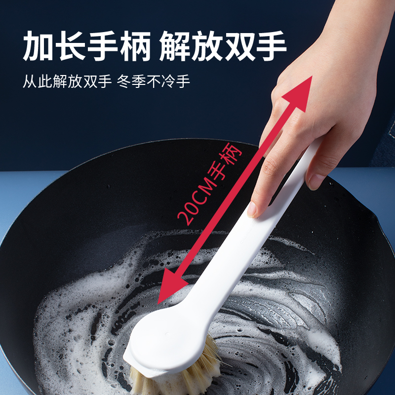 茶花洗锅刷子剑麻刷锅神器锅刷长柄刷厨房洗碗不伤锅多功能清洁刷