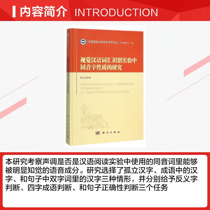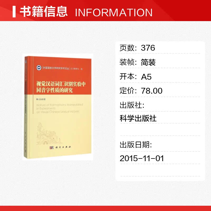 著 语言文字文教 新华书店正版 视觉汉语词汇识别实验中同音字 科学出版 林文治 图书籍 社 性质
