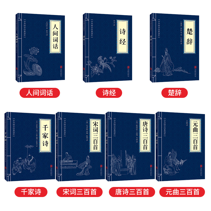 曲正版 唐诗宋词元 全集诗经楚辞千家诗人间词话节选全套共7册唐诗宋词元 曲三百首 中国古诗词经典 名人诗集鉴赏辞典国学经典 书籍
