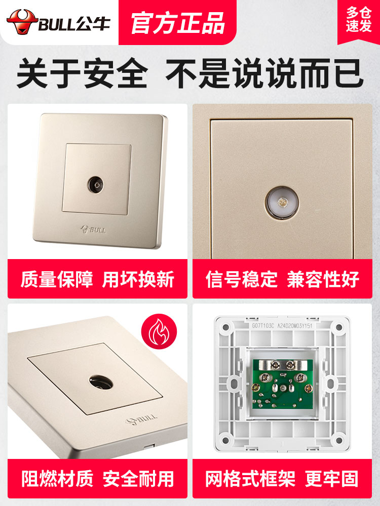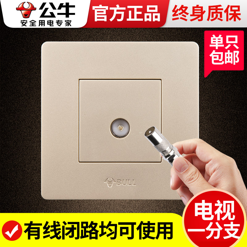 公牛闭路有线电视插座86型开关暗装 一分二tv天线接口面板家用金色