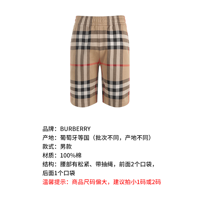 8072666休闲裤 BURBERRY 针织短裤 格纹抽绳式 博柏利博柏利男款