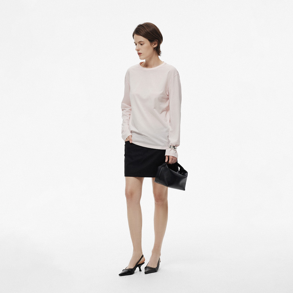 白弓 T恤女宽松舒适感圆领上衣春39059 日本进口环保100%棉长袖