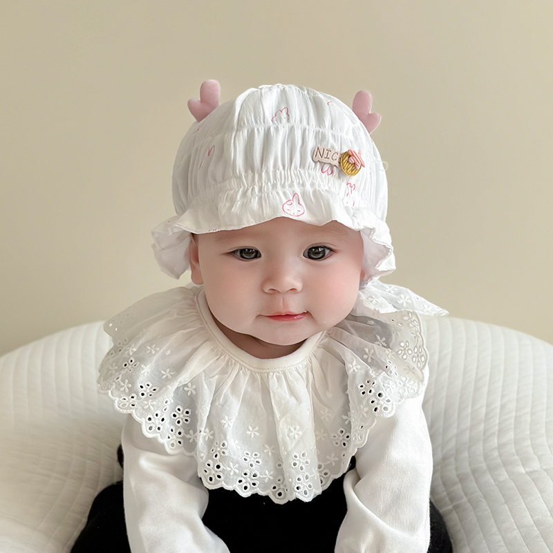 婴儿帽子春秋款 0一6月遮阳太阳帽公主新生儿胎帽女宝宝渔夫帽