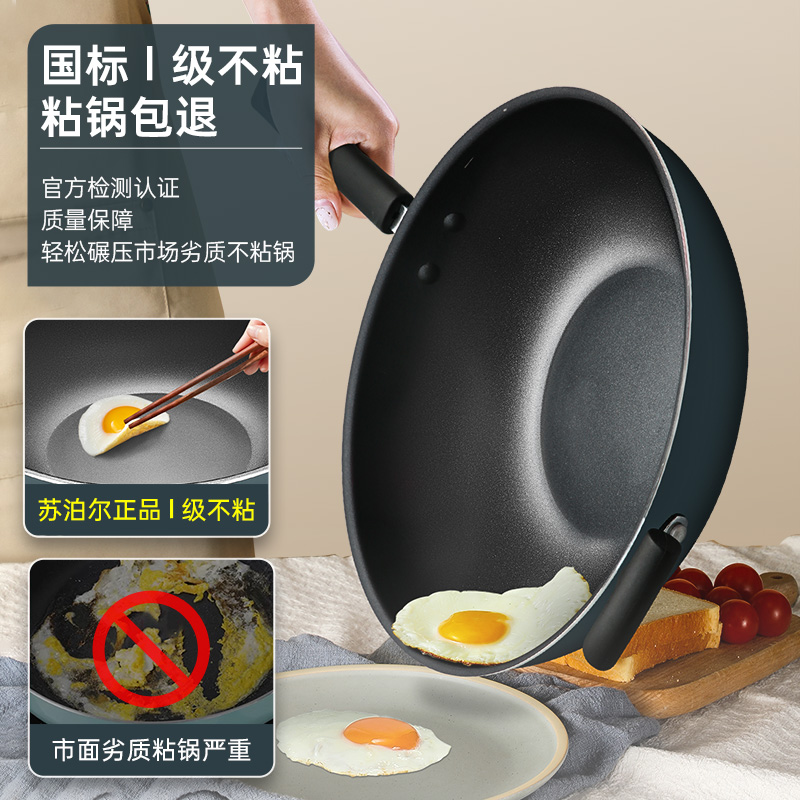 苏泊尔有钛铁锅铁不粘无涂层家用炒锅不粘锅炒菜锅铸铁锅 新品