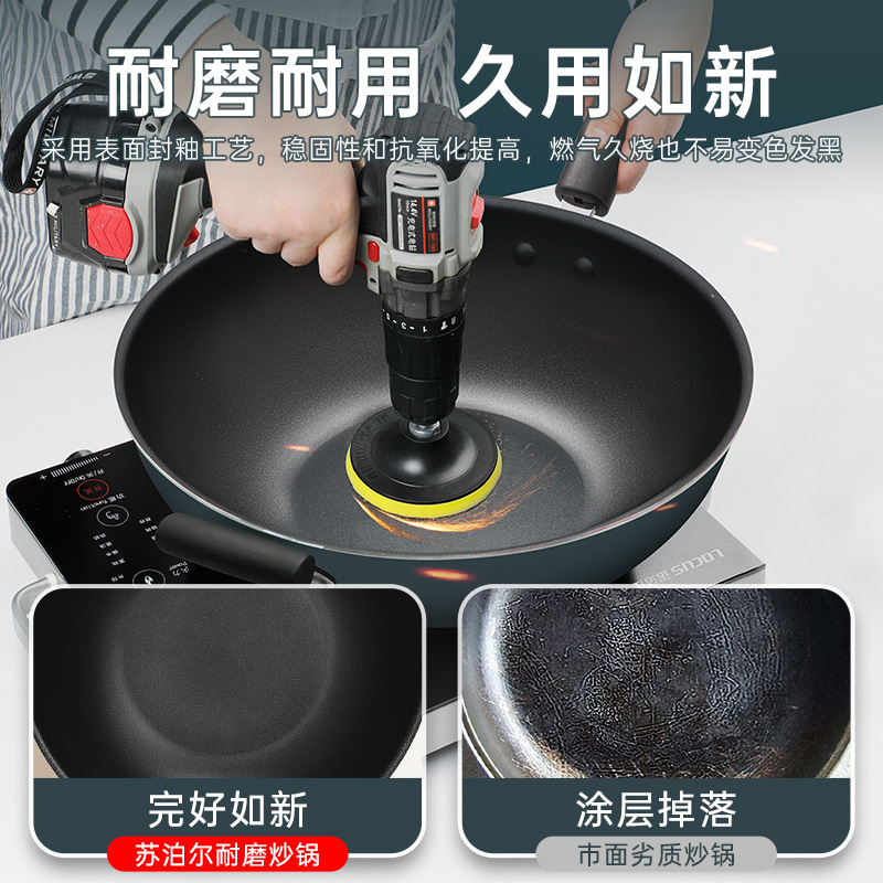 苏泊尔铁锅家用无涂层不锈炒锅燃气灶专用炒锅炒菜锅平底锅铸铁锅