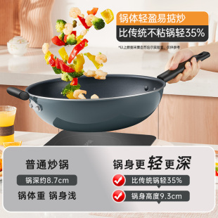 美 有钛不粘锅家用炒锅小平底锅炒菜锅燃气灶电磁炉专用官方正品