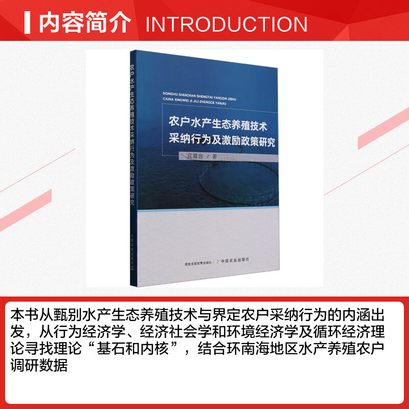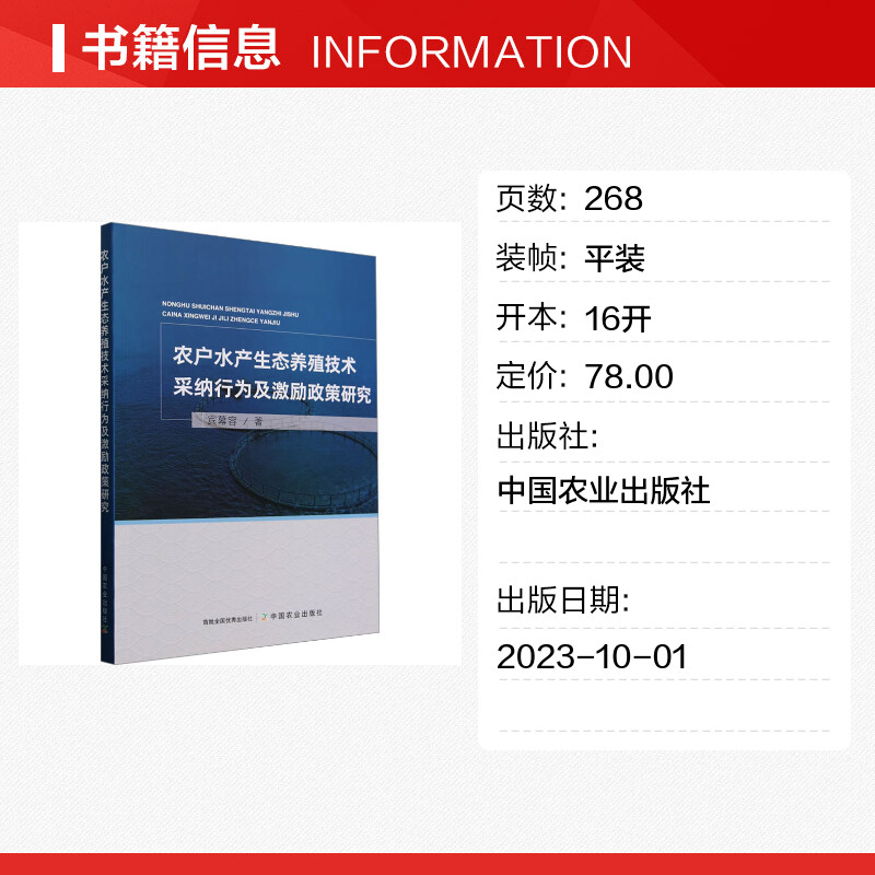 畜牧 养殖专业科技 新华书店正版 农户水产生态养殖技术采纳行为及激励政策研究 中国农业出版 著 图书籍 社 宾幕容