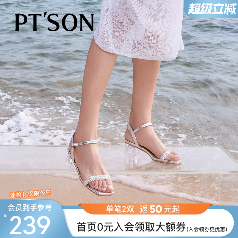百田森水晶凉鞋 高跟鞋 女款 仙女风粗跟凉鞋 女夏 夏季 SUMMER夏同款