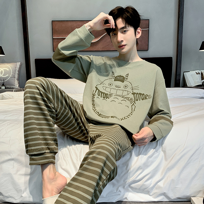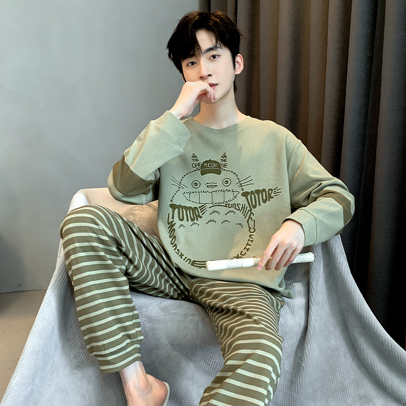 睡衣男士 大码 纯棉春秋男生套装 春季 休闲家居服夏 青年男款 芬腾长袖