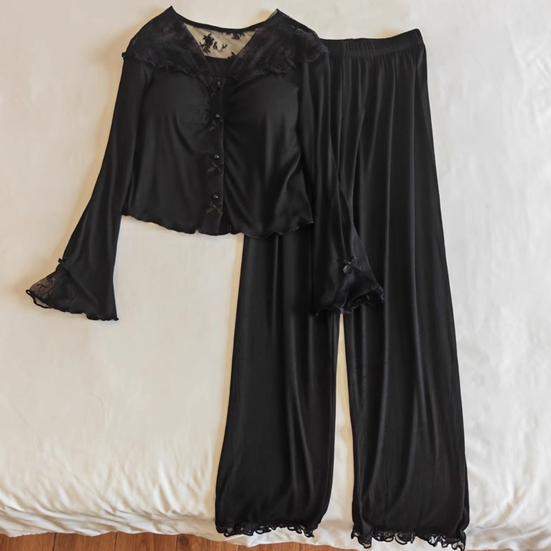 甜美带胸垫性感蕾丝家居服套装 莫代尔法式 睡衣女秋冬季 2025年新款