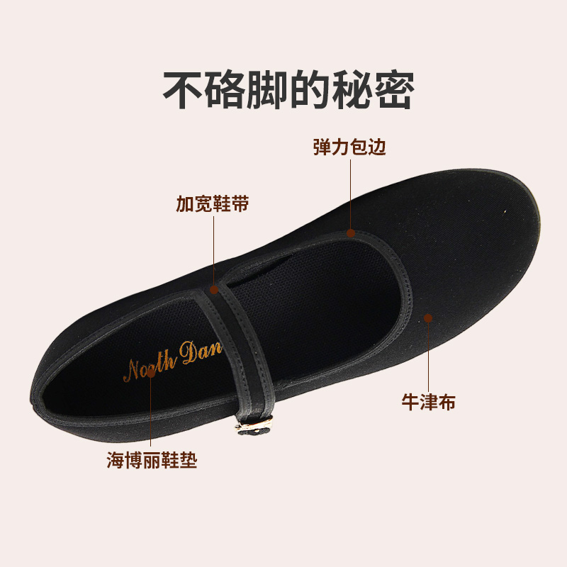 女成人民间考级绒黑布鞋 东北泡沫平底练功鞋 胶州秧歌鞋 民族舞蹈鞋