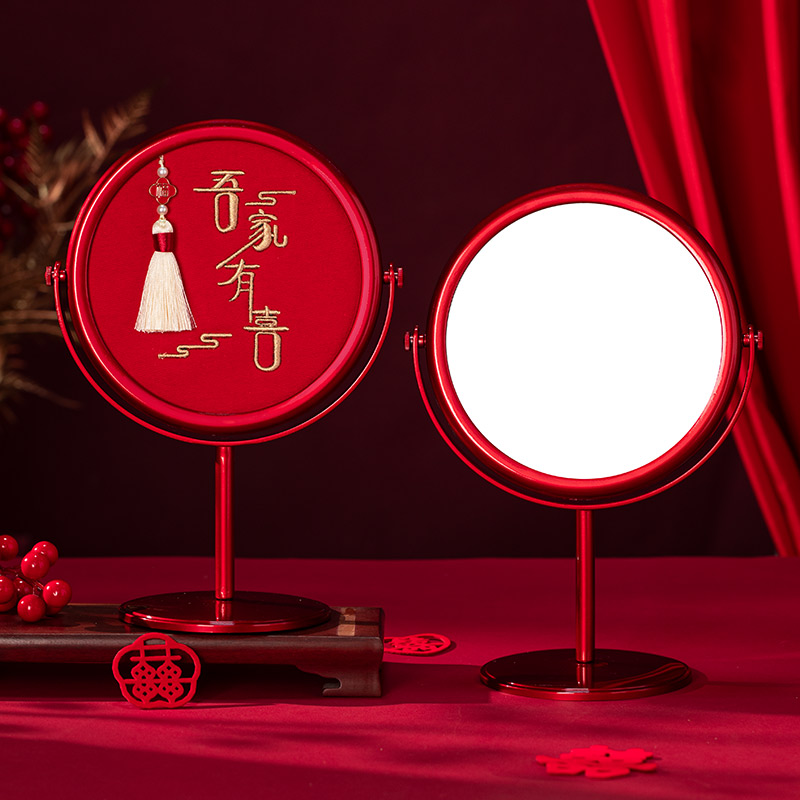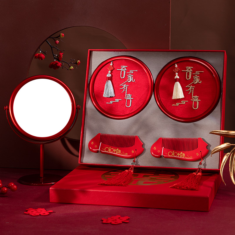 镜子结婚镜梳套装 一对新娘婚礼陪嫁用品大全婚庆女方红色喜镜梳子