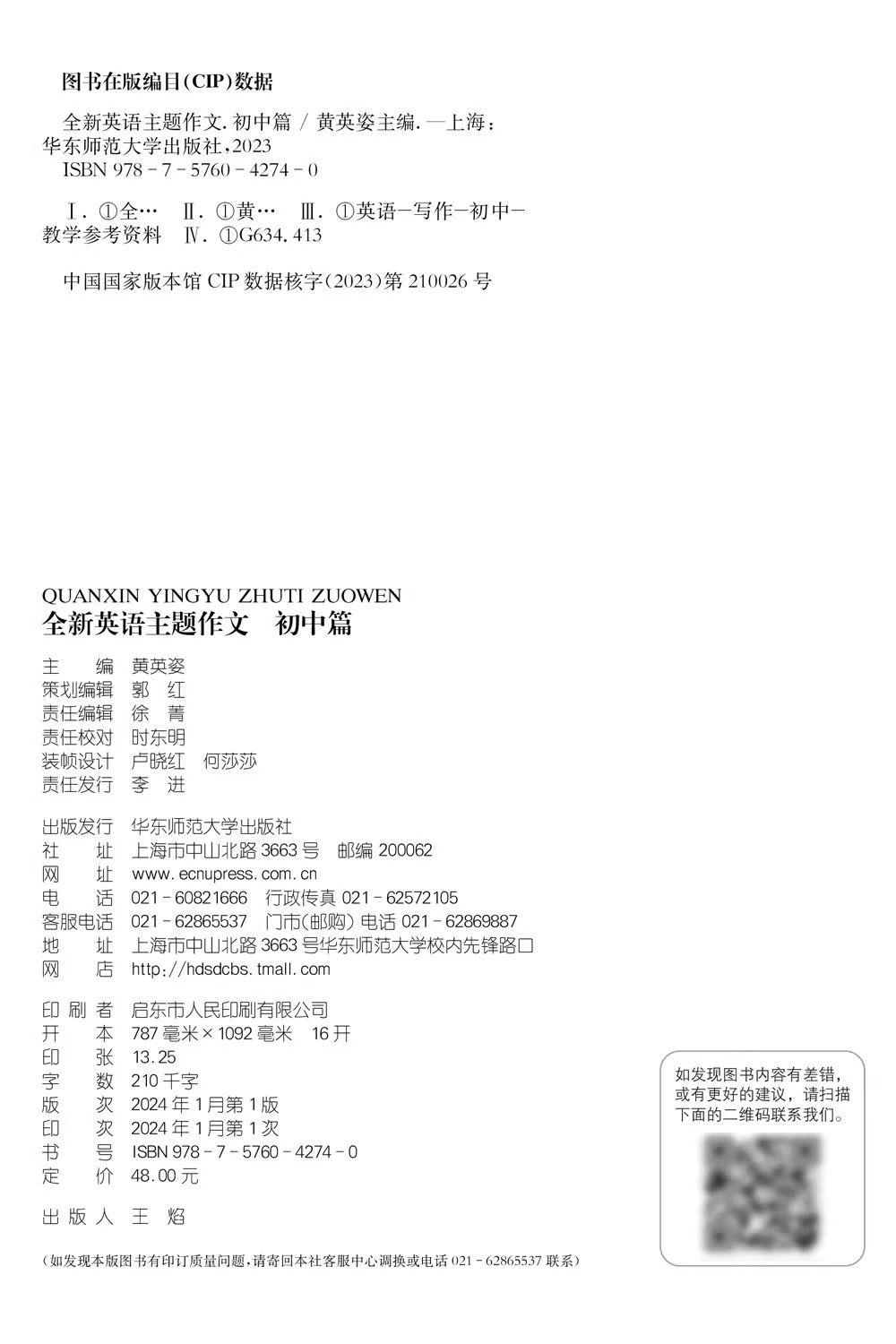 全新英语主题作文初中篇词汇句型积累写作技巧手把手教你写作文提供大量写作范文中考复习资料英语写作华东师范大学出版 社