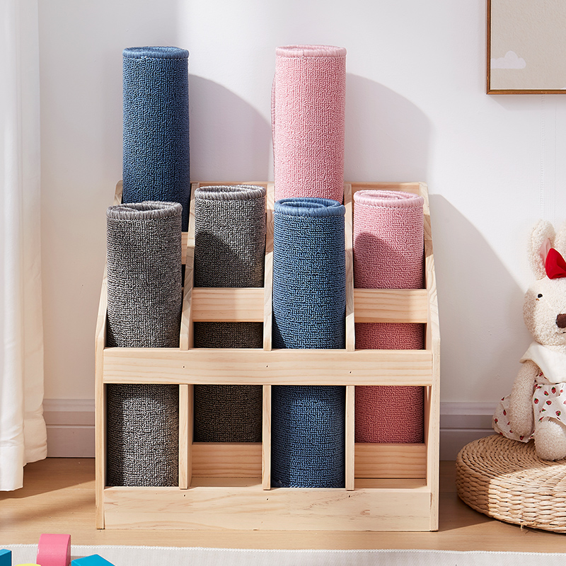 瑜伽垫收纳架落地健身器材地毯收纳架家用实木幼儿园教具工作毯框