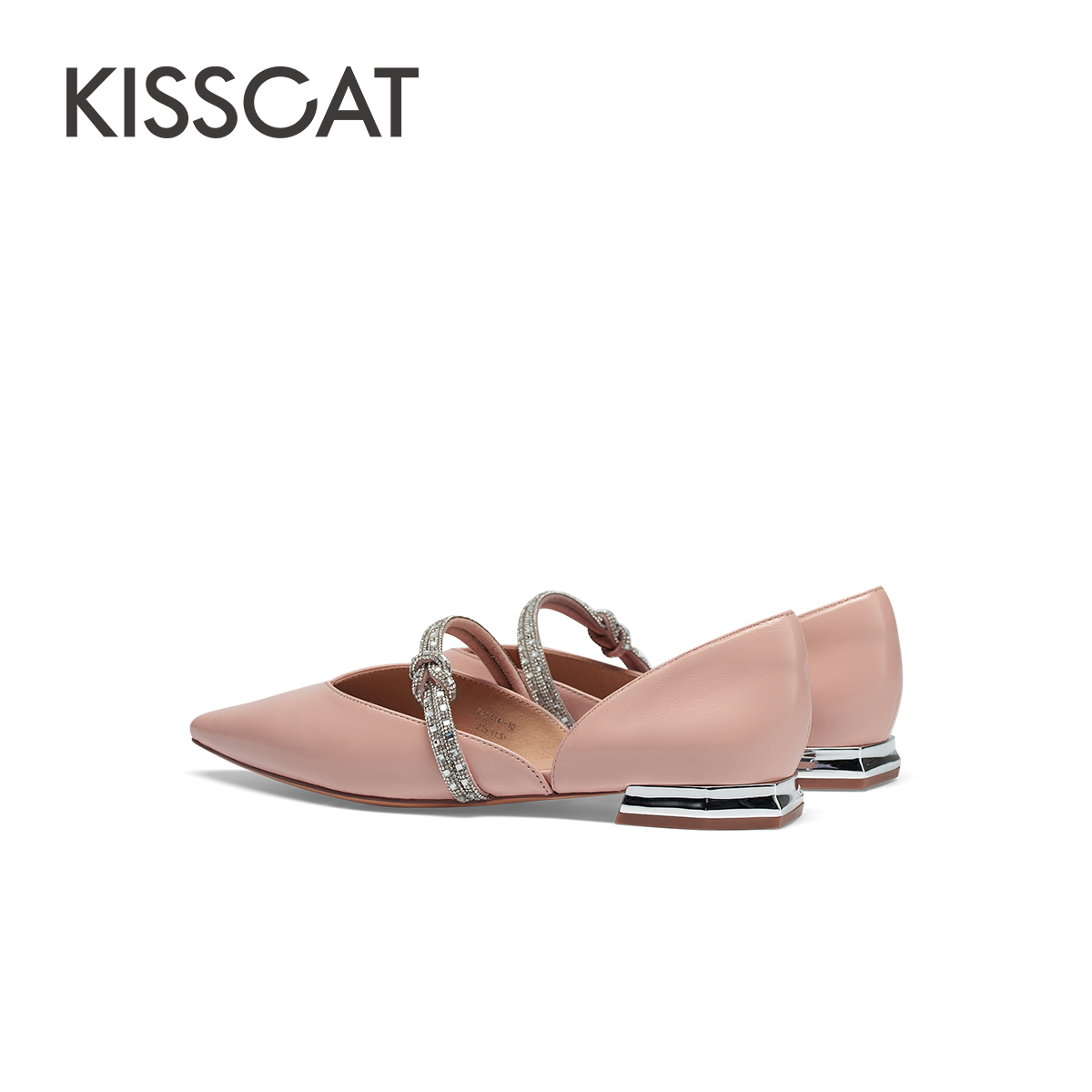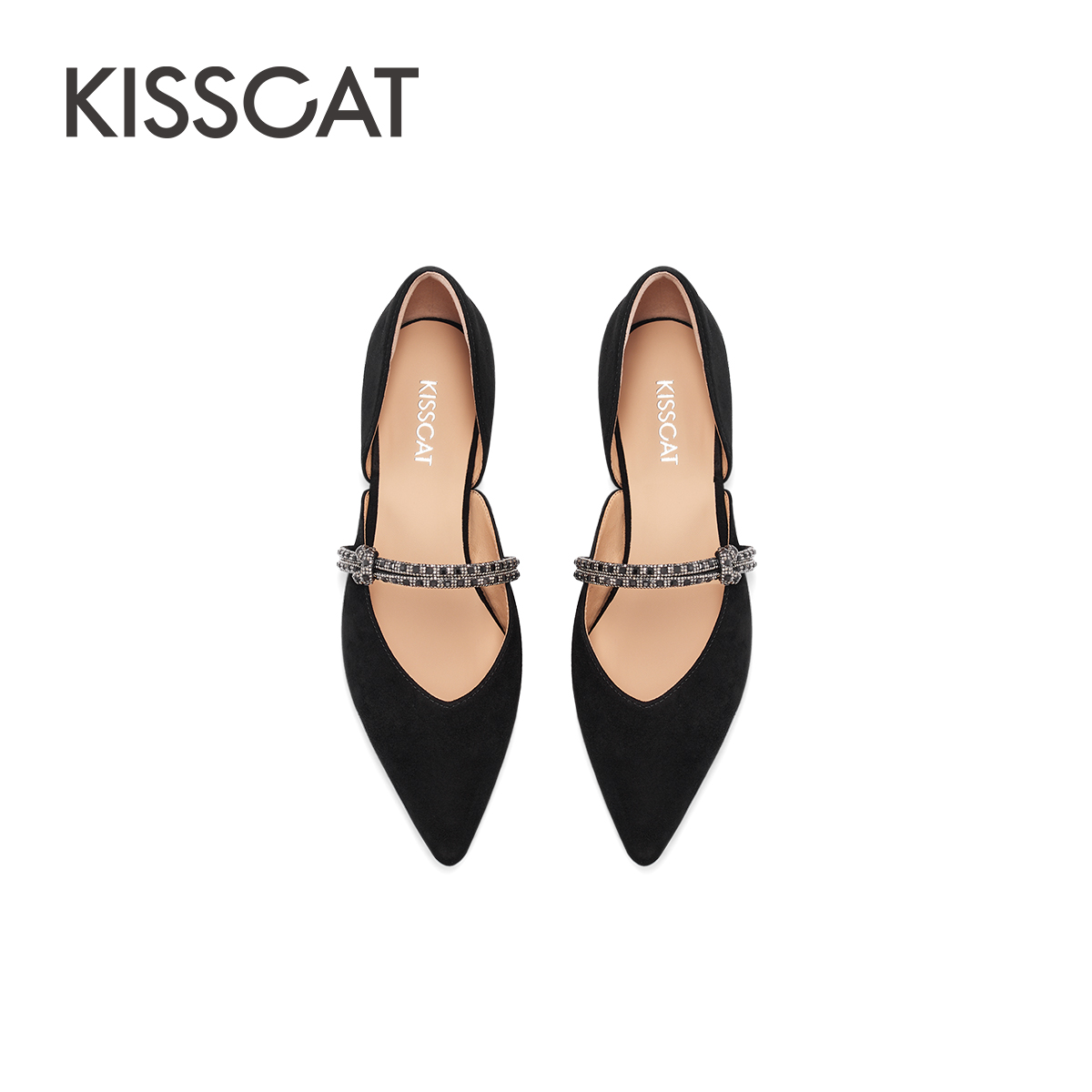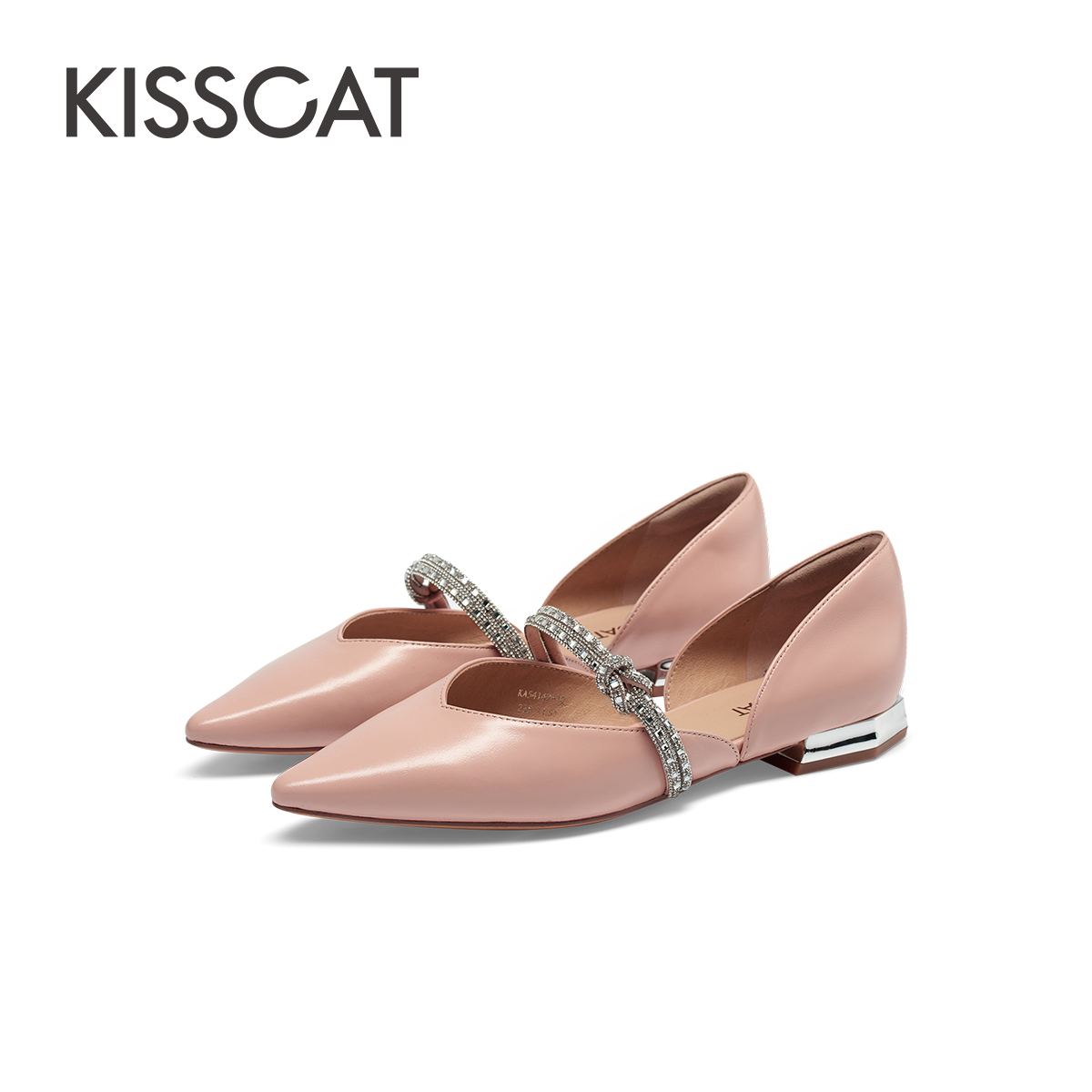 气质钻条尖头单鞋 KISSCAT接吻猫新款 平底空鞋 法式 女 通勤凉鞋