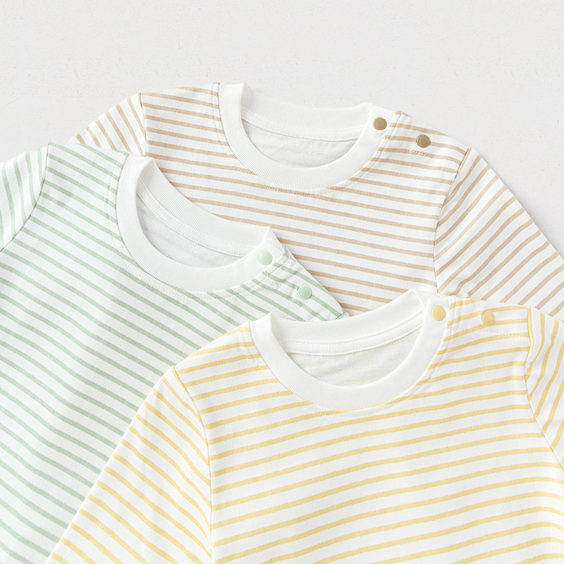 babylove婴儿T恤纯棉春秋宝宝上衣休闲打底衫 简约百搭 条纹长袖