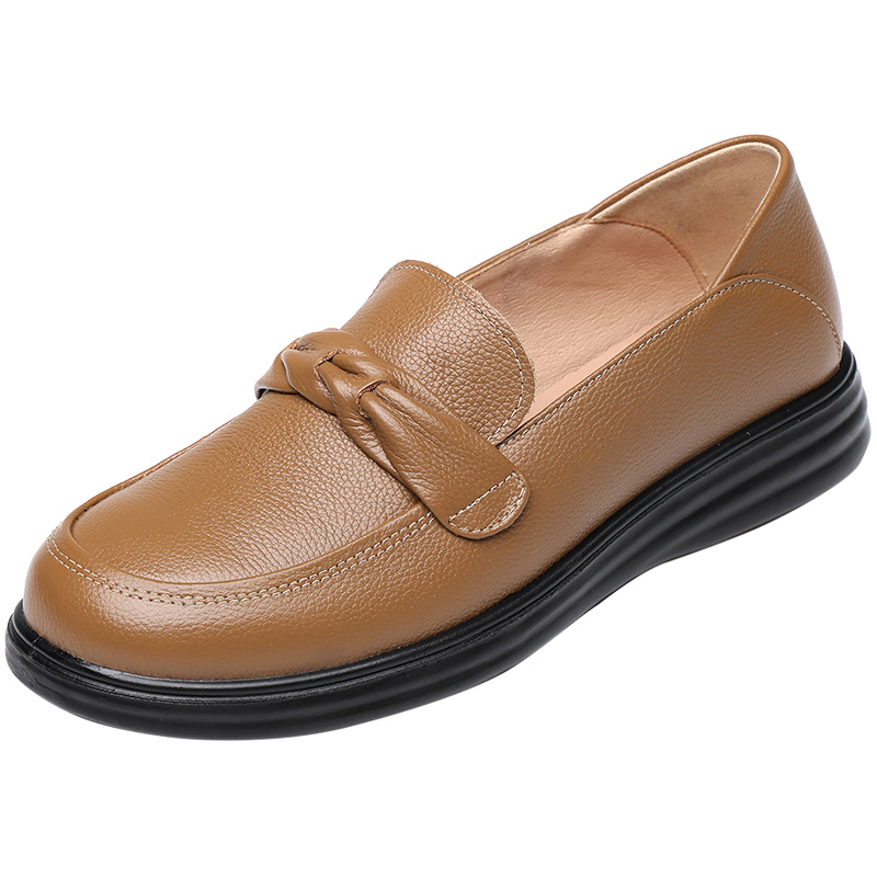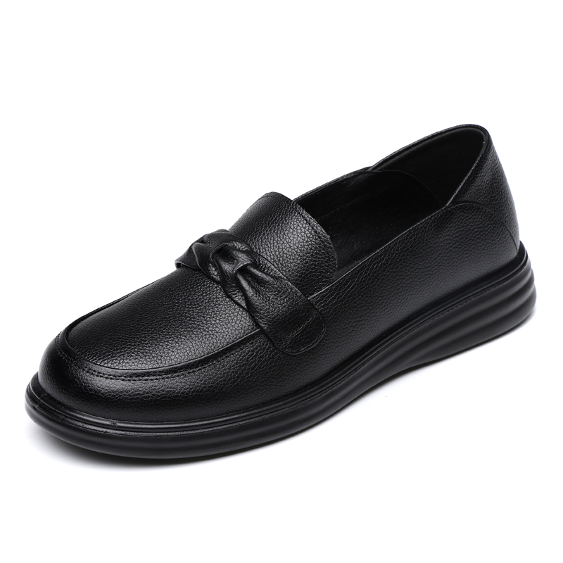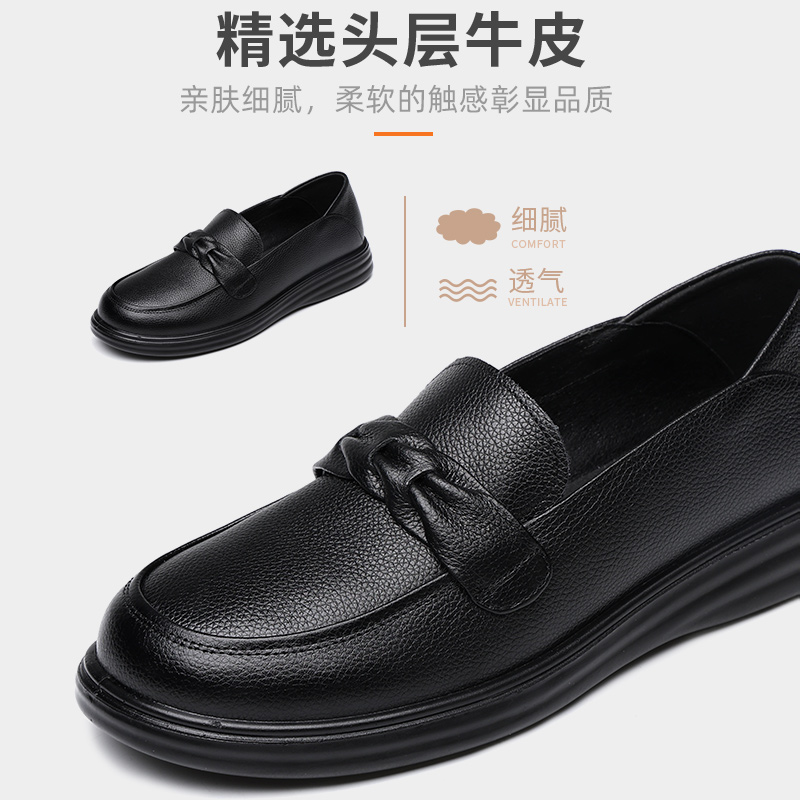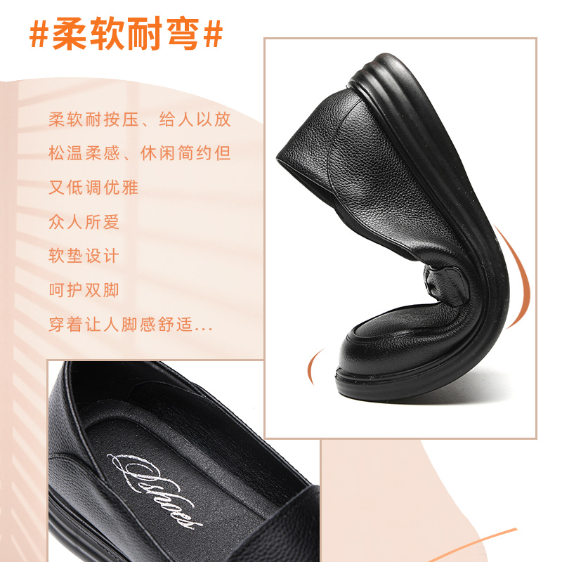 圆头皮鞋 旺奈真皮软底妈妈鞋 中年大码 平底防滑一脚蹬女鞋 清仓 单鞋