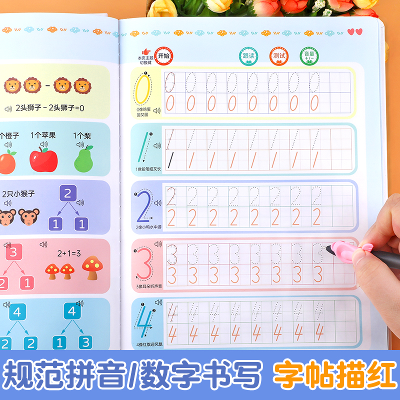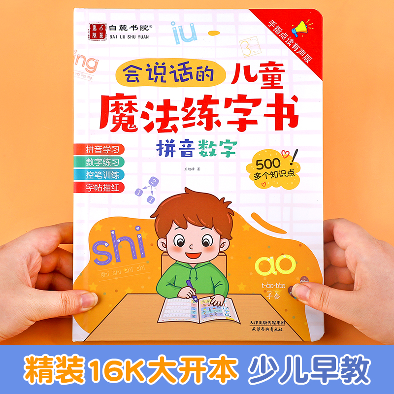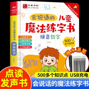 会说话 幼小衔接 魔法练字书拼音拼读训练一年级数学逻辑思维训练儿童趣味控笔练习字帖描红本宝宝手指点读早教有声书usb充电版