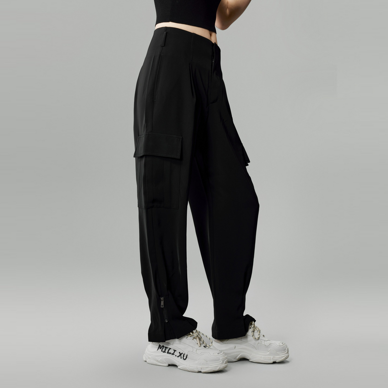 运动裤 女装 新款 TI黑色拉链束脚工装 春季 裤 尤缇时尚 设计感休闲裤