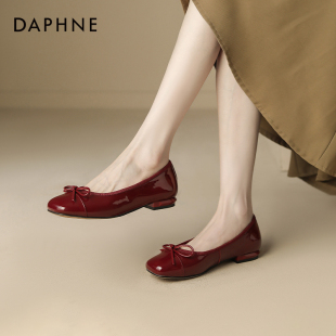 女2025新款 平底小皮鞋 春季 软底舒适豆豆鞋 浅口单鞋 达芙妮晚晚鞋