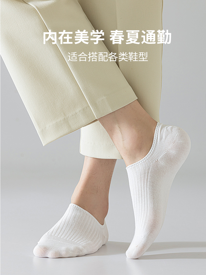 船袜男夏季 纯棉不掉跟防臭吸汗浅口隐形防臭抗菌夏天纯色短袜 薄款