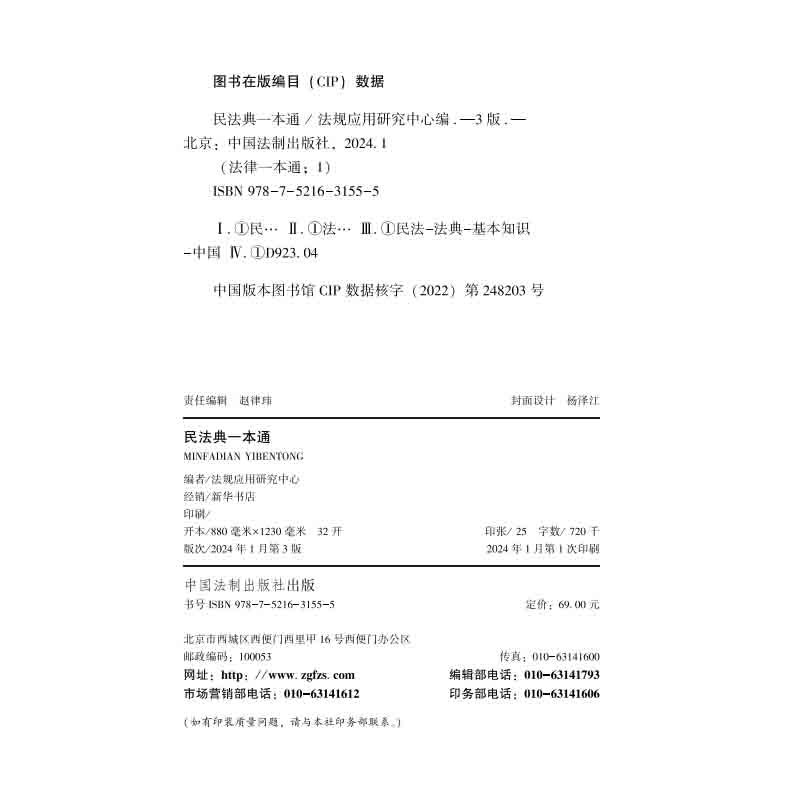 2024新书 中国法制出版 1民法典一本通 法规应用研究中心 社9787521631555 第九版 正版