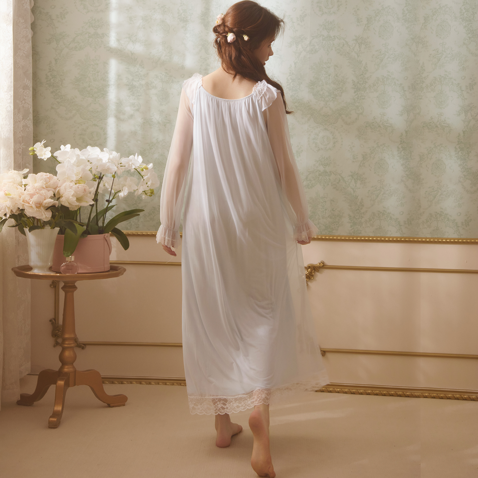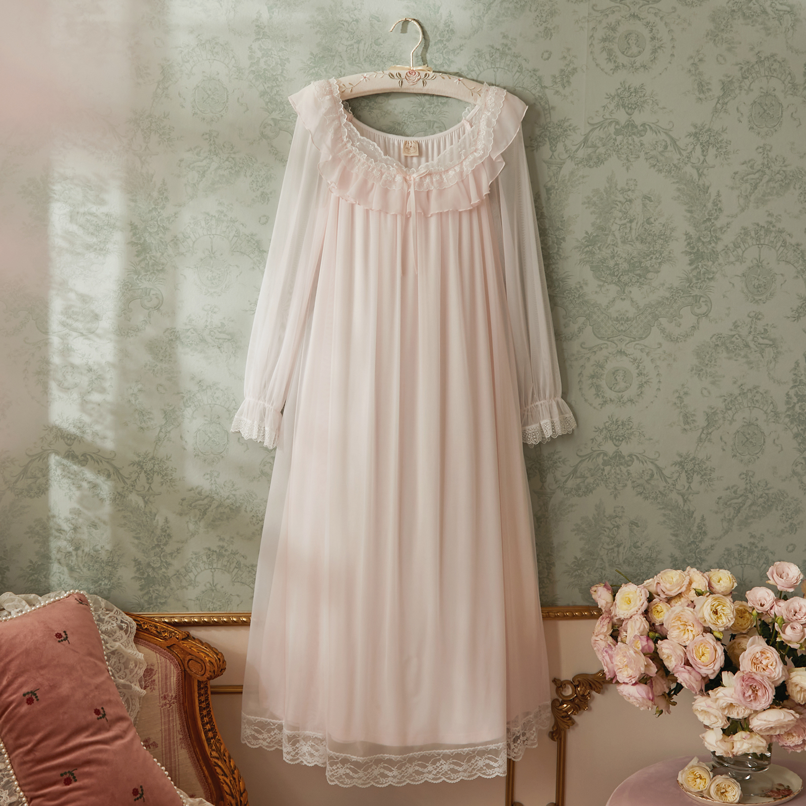 RoseTree冰丝睡裙女春秋长袖 蕾丝性感宫廷公主风纯欲睡衣2025新款